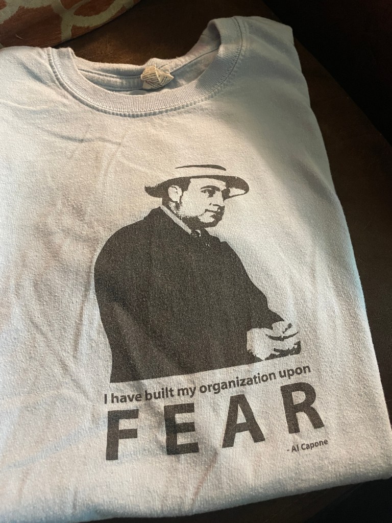 As time has gone on, I’ve found the shirt much less funny. It actually depresses me instead of making me chuckle because I’ve run into so many leaders who genuinely believe making people fear them is the best way to lead. And not gangster types, but genuinely good people who think fear is the right motivator.