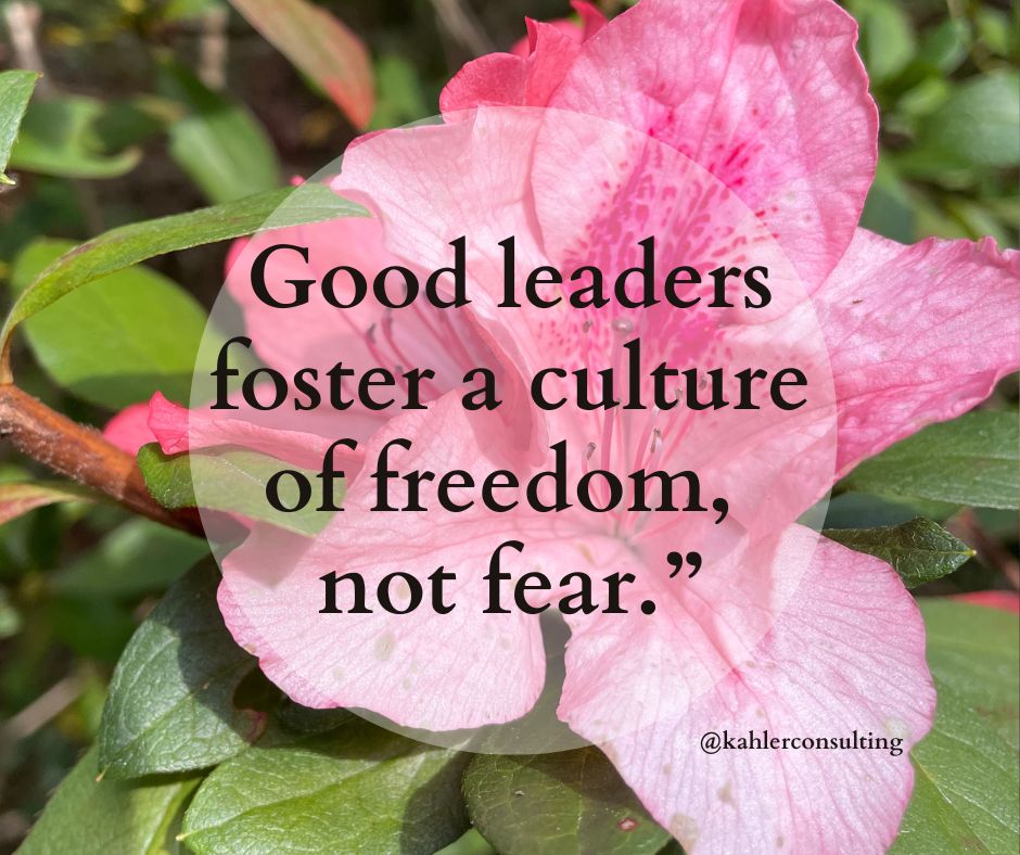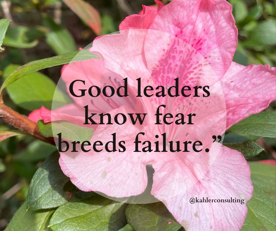 Can I tell you a secret? Those leaders are running on fear too. Fear of failure – fear of being ‘found out’ – fear of getting kicked out of the cool kid club – fear of being misunderstood (or understood!) – fear of loss of power – there are endless options for things they fear. Regardless of the motivation, the results are never good. Turnover is high, trust among team members is low, and new ideas and expansion are non-existent.