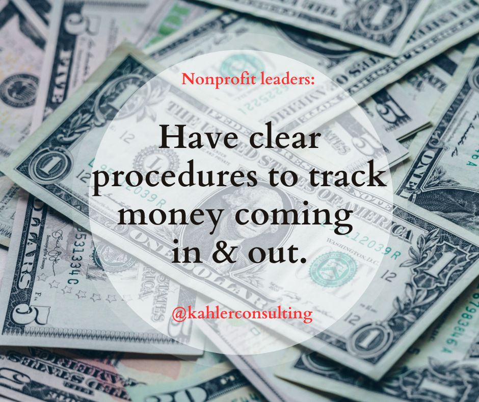 So Tip #2: have clear procedures to track all money coming in and out of your nonprofit. (Oh, and make sure to actually follow them). Some policies I utilize and also recommend: