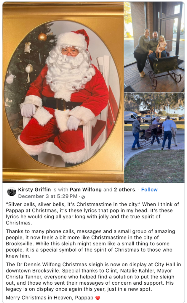Special thanks to Mayor Tanner, City Manager Hendrickson, Vice Mayor Bronson, Councilman Hallal, and Commissioner Hawkins for responding to the public inquiries and helping us get our sleigh back.